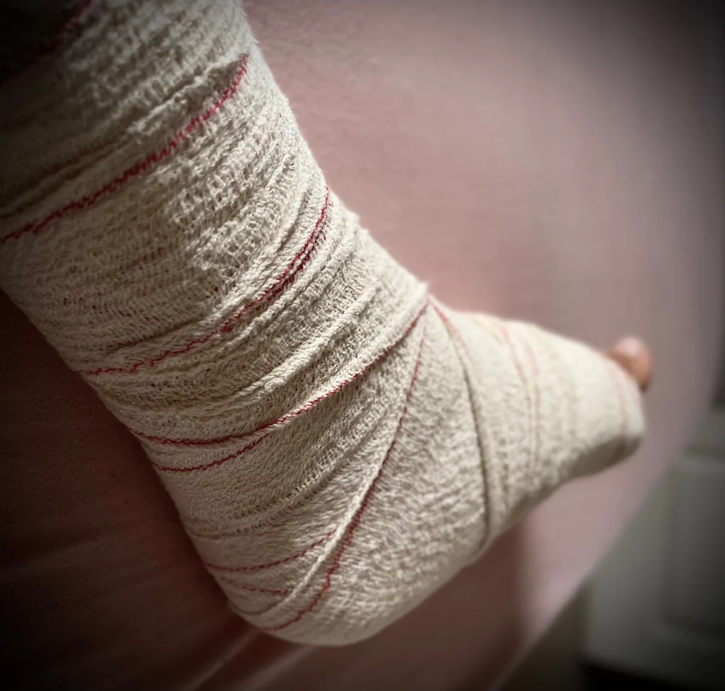 Wenige Minuten später wurde ich in ein anderes Behandlungszimmer gebracht, wo mir eine Schwester einen Gips anlegte. Der Arzt drückte mir ein Rezept für Schmerzmittel und Thrombosespritzen in die Hand – mit dem Hinweis, dass ich lernen müsse, mir die Spritzen selbst zu setzen.